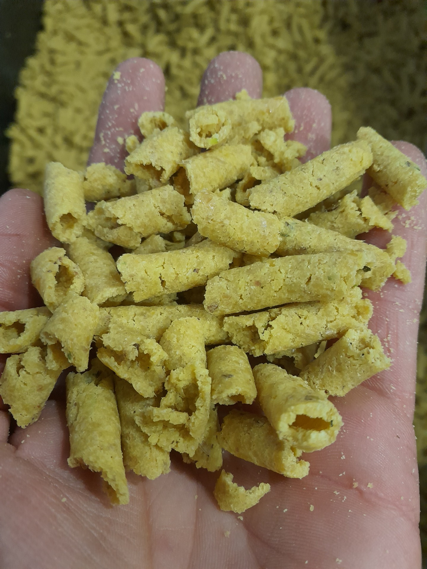 Extrudovaná sója je vypěstována a vyrobena na Farmě Šalomonovi. Jedná se o odrudů Amiata GMO Free. Sója je rozemleta a tepelně upravena při teplotě 130 stupňů. Následně je provedeno alespoň 15 hodinové vydýchání a poté balení.